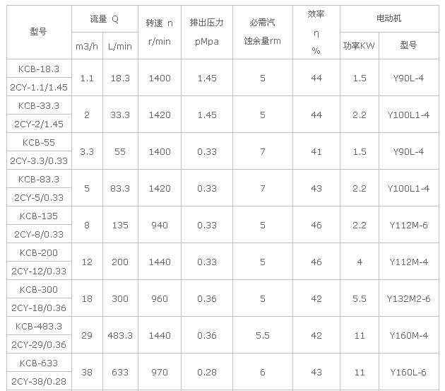適用于輸送不含固體顆粒和纖維,或有腐蝕性的高溫液體, 溫度不高于120℃,粘度為5~1500cst的潤滑油或性質類似潤滑油的其他液體。