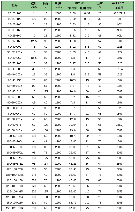 離心式熱油泵型號表示:以BRY50-32-200A為例BRY 50-32-200 ABRY表示:熱油泵50表示: 泵體入口直徑(mm)32表示:風(fēng)冷